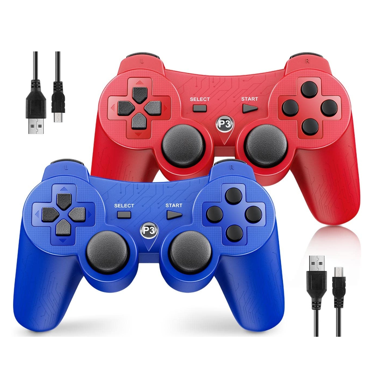 طقم 2 ذراع تحكم OKHAHA لجهاز PS3 – لاسلكي – اهتزاز مزدوج – بلوتوث – قابل لإعادة الشحن (أزرق + أحمر)