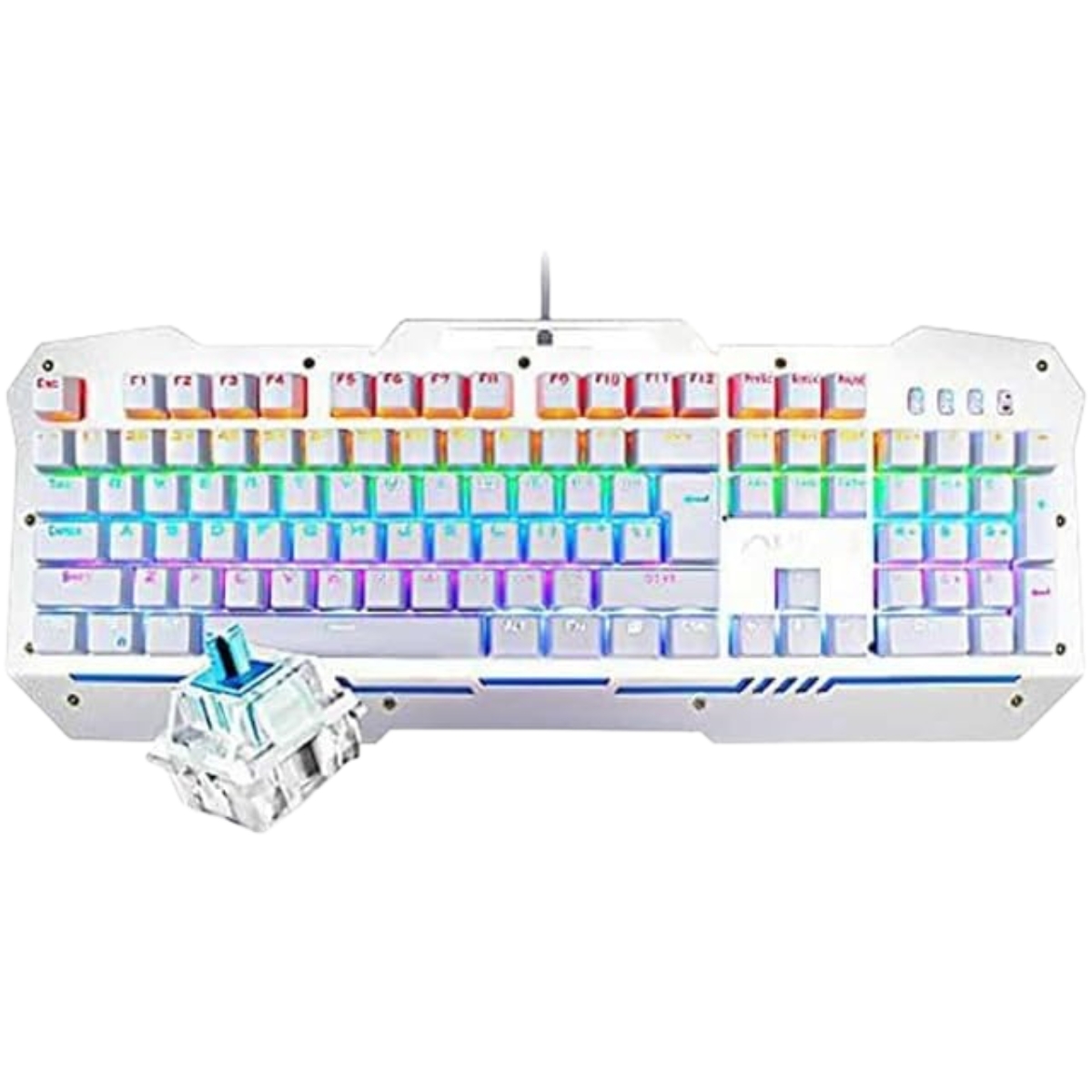 Mechanical Keyboard Plug: USB Number of Key: 104 keys Anti-Magnetic Wire Two color Injection Keycap integrated metal panel, never rust, scratch resistant Three Dimensional Logo The key cap adopts two-color injection molding process